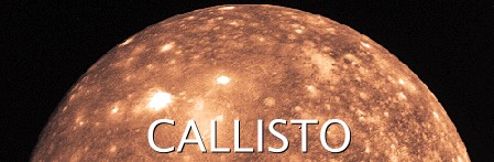 Callisto is the eighth of Jupiter's moons, and its second largest, with a diameter of 4800 km. Callisto's surface is completely covered with craters, and is very old, like the highlands of the Moon, and parts of Mars. In fact, Callisto has the oldest, most cratered surface of any body yet discovered in the solar system, having changed little, except for scattered meteorite impacts, in the 4 billion years since the solar system was formed. Callisto orbits just beyond Jupiter's main radiation belt. The Galilean moons are also Jupiter's four largest moons, and can be seen, top to bottom, in the order of their distance from Jupiter, against the backdrop of the giant planet, in the picture at the right. They are Io, Europa, Ganymede and the furthest, Callisto. These moons are very large. The smallest of these, Europa, is the size of Earth's moon. Ganymede is the largest moon in the solar system. In fact, Ganymede with a diameter of almost 5000 kilometres is larger than the planets Mercury and Pluto! Jupiter's Great Red Spot appears in the background. This huge storm system (two to three Earths could fit inside it) has been raging in Jupiter's atmosphere for over 300 years. These photos were taken by the Voyager spacecraft in 1979 and by Galileo, which began exploring the Jovian system in 1995. There is little evidence of tectonic activity on Callisto. This has puzzled scientists, since Callisto is very similar in makeup to Ganymede, but the latter moon seems to have a lot of activity under its surface. However, like Ganymede, Callisto's oldest craters have disappeared, or collapsed. There are no high crater-ring mountains or deep central depressions as there are in craters on the Moon and Mercury. Callisto may have a very thin atmosphere, perhaps composed of carbon dioxide. The spacecraft Galileo has also detected evidence of a weak magnetic field, which seems to indicate some sort of 'salty fluid' below the surface. Callisto has a low density (1.86 gm/cm3). It appears to be composed of a crust about 200 kilometers thick. Beneath the crust it is suggested that there may be a salty ocean layer that is more than 10 kilometers thick. Beneath that underground ocean layer, the interior seems to be composed of compressed rock and ice, with the proportion of rock increasing towards the centre. Callisto is about Meteorites have punctured holes in Callisto's crust, causing water to spread over the surface, and forming bright rays and rings around the craters. The idea that there may be water below Callisto's crust is explained by Dr. Margaret Kivelson, space physics professor at the University of California at Los Angeles. "The premise of an ocean came from studying the magnetic fields around Jupiter and its moons. It was found that Callisto's magnetic field varies (flows in various directions at different times) in response to the background magnetic field generated by Jupiter. The new Galileo data certainly suggest that something is hidden below Callisto's surface, and that something may very well be a salty ocean". The largest craters on Callisto are surrounded by concentric rings which look like huge cracks, and which have been smoothed out by billions of years of slow movement of ice. The largest of these has been named Valhalla (left). It has a bright central region that is 600 kilometers in diameter, and the entire crater is nearly 3000 km across. Valhalla is the result of a massive impact by a meteorite or small asteroid. (Another example is Caloris Basin on Mercury). Photos and some information from NASA Picture of the Day, as well as the excellent Views of the Solar System |