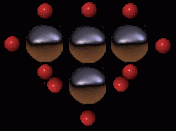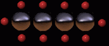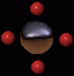 ![]() ![]() ![]() These two atoms are the ones that occur most frequently in organic compounds ... substances made by living organisms. Compounds made from just these two atoms are called hydrocarbons, and there are many different ones, as you will see. Hydrocarbon molecules can form from decaying organic garbage, or they can form after millions of years of heat and pressure on buried vegetable matter. These latter hydrocarbons occur as crude oil, and we can separate out all the different hydrocarbon molecules contained in that oil. Let's learn about some of them. The simplest hydrocarbon is one made from a single carbon atom. Carbon atoms are capable of making connections, or bonds, with four other atoms. If these connections are all filled by hydrogen atoms, we get a molecule that looks like this: