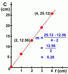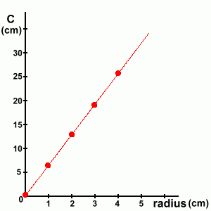 And there is the result ... the equation of the line found by graphing the radius and circumference for various circles gives a linear function, which is the formula for circumference using r.