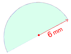 You can also use these formulas to find d or r, if you know the circumference. ![]() The circumference is 120 cm. Find the diameter. C = π·d 120 = π·d 120 ÷ π = d 38.2 cm ≈ d ![]() The circumference is 13.2 m. Find the radius. C = 2·π·r 13.2 = 2·π·r 13.2 ÷ 2 ÷ π = r 2.1 m ≈ r There are all sorts of problems you can solve using these formulas: Example 5: ![]() Its length is the circumference of the cylinder. C = 2·π·r C = 2·π(3.5) C ≈ 22.0 m ![]() A semicircular piece of metallic jewellery will have a gold wire attached all the way around. How long must the wire be? There are several distances we must calculate: ![]() Distance 2 is half the circumference of the circle: C÷2 = 2·π·r ÷ 2 = 2·π(6) ÷ 2 ≈ 18.8 mm So the total distance around is 12 + 18.8 ≈ 30.8 mm |