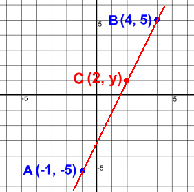 ![]() ![]() Why 'three or more'? This is because two points will always line up. The problem here is to determine if a set of points actually do line up. This can't be done by just looking at the points, because they could be very close to lining up, but actually don't. In order to solve these problems, you'll need to be able to work out slopes. ![]() There are three points, labelled A, B, and C. Do they line up? If they do, the line segment should have the same steepness, or slope, everywhere along it. In other words, the slope of the green segment should be the same as the slope of the red segment. The line will not bend at point B. Let's work out the slopes of segments AB and BC. ![]() Because the slopes of each segment are the same, the entire line segment from A to C must form one straight line. We could check by also finding the slope of the entire segment AC, which would also be 2, but that isn't necessary. Our conclusion is that points A, B, and C are collinear. Let's try another example. Have a look at the diagram on the right. ![]() Again we find the slopes: ![]() Because the slopes of the two segments are not the same, the poins are not collinear. Our final example looks at how to find a point that will be collinear with two given points. ![]() A (-1, -5) and B (4, 5) Of course, these two points are collinear; two points always line up. The problem is to find some other point ... any point we want ... that will be collinear with these two. ![]() We picked x = 2, so the point we want will be (2, y) since we don't know its y value. The slope of the whole line: m = (5 - -5)/(4 - -1) = 10/5 = 2 This means that any line segment made with point (2, y) must also have slope 2. We'll use point B: C (2, y) and B (4, 5) must have slope 2 ![]() So the collinear point C = (2, 1). NOTE: We picked an x that looked like it would give a whole number for y, but that wasn't necessary; any x would do. And we still had to do the solving, because the point might have been (2, 1.1), which couldn't have been determined by looking at the graph. You can also find the equation of these lines. |