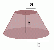 - the radius of the bottom, labelled b (this is half the width at the bottom)