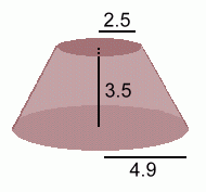 In this example, the pile of grain is 3.5 metres high, and the half-widths at top and bottom are 2.5 and 4.9 metres, as shown at the right.