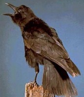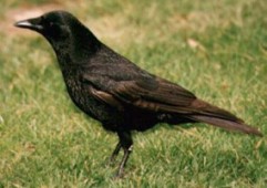 ![]() ![]() Crows are thought to be the most intelligent of all birds. A crow is a large black bird that lives everywhere the world except Antarctica, New Zealand, and South America. Crows belong to a family of birds which also includes jays, ravens and magpies ... the family Corvidae. The common crow (also called the American crow, Corvus brachyrhynchos) lives in open areas, farmland, the edges of woods, and parks throughout North America. Crows usually stay in the same region the year around ... only those living in the far north migrate south for the winter. ![]() The American crow is about 43 to 53 centimeters long. It has black shiny feathers and a strong, sharply pointed bill. Male and female American crows look alike, but the female is slightly smaller. The female lays four to six greenish-blue eggs with brown spots; these are incubated for about 18 days. Both the male and female care for the young, which are called simps; they leave the nest after about a month. Adult crows live for about 10-12 years. Owls and hawks are two of the main predators of crows. Crows in flocks will often attack an intruding hawk or owl in an attempt to drive it from their territory. Humans are also responsible for killing many crows. ![]() ![]() Crows are omnivorous (like humans) ... they eat just about anything. They will eat a farmer's crops, and are especially fond of corn. They also feed on many kinds of insects, spiders, small birds, eggs from other birds' nests, seeds, rodents, and the flesh of dead animals. They will also consume garbage. Often crows will hoard food, sometimes burying it. The crow is now understood to be a highly intelligent animal, capable of complex communication and problem-solving. Crows drop nuts on the street and wait for automobiles to crush them, then fly down to eat the pieces. They will use a short twig (that they have pruned and shaped in advance), held in their beak, to dig insects out of the bark of a tree. It was previously thought that only primates had this ability. There are many anecdotal records testifying to the intelligence of this bird: ![]() - Nature writer Candace Cavage describes a crow that moistened dry food provided by humans, by filling a small plastic cup with water and dumping it over the food! - There are documented cases of crows assisting wounded members of their flock by distracting predators. - British zoologists were amazed when they saw a captive crow called Betty making a hook out of wire to reach food. This was the first time any animal has been observed creating a new tool for a specific task. ![]() |