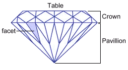 ![]() ![]() Diamond is the hardest known natural material. Its hardness makes it useful in industry, and its high dispersion of light when cut makes it appear very beautiful to the eye. The name 'diamond' comes from the ancient Greek word adamas, meaning 'invincible'. Diamonds have been valued for their beauty for thousands of years, and have been used for cutting and engraving for just as long. A diamond is a transparent crystal of bonded carbon atoms bound in a tetrahedron. When first removed from the ground, most diamonds are roughly rounded crystals; some are colourless, while others are pale shades of yellow; red, orange, green, blue, brown, and even black. These raw uncut stones lack the brilliance of gems which have been cut to increase their internal reflection properties. ![]() Diamonds are formed deep in the earth, at depths of at least 150 kilometres, where the high temperature and pressure compresses carbon molecules into a compact diamond crystal lattice. Diamonds are sometimes found inside long-dormant and solidified volcanic lava pipes, in an igneous mineral called kimberlite. Carbon found in diamonds has been shown to come from both inorganic and organic sources. Some diamonds were formed from inorganic carbon deep in the Earth's mantle; others were created when organic matter near the surface was pushed down deep into the Earth as its surface plates pushed into each other. Learn more about plate tectonics on our volcanos page. However they were formed, diamonds that eventually reach Earth's surface are usually very old, ranging in age from under 1 billion to over 3 billion years. Once diamonds have been brought to the Earth's surface by magma in a volcanic pipe, they can erode out of the rock and be distributed over a large area. Small diamonds can also form in other naturally occurring high-pressure, high-temperature situations. For example, the impact craters where meteors strike the Earth show evidence of diamond formation. In fact, these 'microdiamonds' are used as to identify ancient meteorite impact sites. ![]() Carbon atoms in graphite , on the other hand, connect differently, forming sheets of atoms one on top of the other; graphite is soft, dark in colour, and slippery when in powder form. Comparing the structure of these two substances, both composed of carbon atoms, we see that the difference in their properties is due simply to the way the atoms are bonded together. Some diamonds are actually harder than others. The hardest type, quite small octahedral diamonds, are found in New South Wales in Australia, and are used to polish other diamonds. It is thought that they are the hardest type because their crystal form was grown in one stage; other diamonds were formed in many stages, with additional growth of crystal adding to their size but also adding flaws and defects, thus affecting their hardness. The hardness of all diamonds compared to other natural materials makes them very useful in industry, especially for use in cutting and grinding tools. Diamond can be used to cut, polish or wear away any material, including other diamonds. They are used in drill bits, saw blades, abrasive papers and engraving tools. Other Properties of Diamond ![]() Toughness is a material's ability to resist breaking when hit forcefully. While diamond is more fragile in some orientations (it can be split), its overall toughness is exceptionally high. Colour Diamonds can be nearly any colour, although yellow and brown are the most common. Coloured diamonds contain impurities (various atoms replacing some of the carbon atoms in the crystal), or irregularities in their structure. Pure diamonds are transparent and colourless. Combustibility Like other forms of carbon (coal, for example), diamonds will burn, at a temperature of 800° Celsius, providing that enough oxygen is available. Optical properties Diamond acts like a prism, breaking light that enters the crystal into different wavelengths to form a rainbow of colours. This effect, multiplied by the many faces of a cut stone, gives a finished diamond a sparkling appearance called fire. In addition, diamond's high index of refraction can easily cause total internal reflection of the light, increasing its brilliance. Thermal properties While diamond is an electric insulator (it doesn't easily pass electricity), it is a good conductor of heat; in fact, it's one of the best. This makes it useful in the manufacture of electronic semiconductors. Diamonds as Gems Diamonds that have been prepared for use in jewelry are rated according to clarity, the number of carats, the colour, and their cut. Clarity is a measure of how clear the diamond is. Clarity is affected by inclusions, which can be foreign materials in the crystal, or structural imperfections like tiny cracks, which can cause the diamond to appear cloudy. Only about 20% of all diamonds mined have a high enough clarity to be used as gems. Carat weight is a measure of the mass of a diamond. One carat is one fifth of a gram, or exactly 200 milligrams. Diamonds of less than one carat are measured in points, where one point is equivalent to a hundredth of a carat, or 2 mg. Colour measures how close to perfectly transparent a diamond is. But few gem-quality diamonds are perfectly colourless; most white diamonds appear transparent, but have some nitrogen atoms replacing carbon atoms; this impurity can cause a slight yellow tint. The hue and intensity of the colour will help determine the diamond's value. For example, white diamonds with a yellowish tint are usually less valuable, while those with a pink or blue colour can be extremely valuable. If a diamond has a very strong colour, it's rare, and its value is usually higher. ![]() Cut describes how the diamond has been shaped and polished into a gem. There are well-described mathematical guidelines for the angles and face lengths to be cut in order that the final gem reflect the maximum amount of light. For example, the modern round 'bri