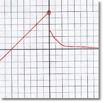 On the left above is a function you may not have seen before ... it's asymptotic to the x-axis, and has a maximum y-value of 4. This function is also continuous ... there are no gaps.