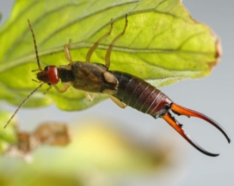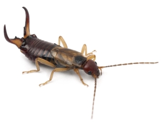 ![]() ![]() Earwigs are a nuisance problem only in summer. They're most active at night, and hide during the day in dark damp areas. They can enter homes and other buildings, sometimes in large numbers. However, they don't cause damage to property or food, but they can chew holes in leaves and flower blossoms. Earwigs are about one and a half centimetres long, with a flat, reddish brown body and very short wings. They have medium length antennae and chewing mouthparts. They have a pair of strong pincers on the tip of their abdomen. Earwigs use their pincers to protect themselves from predators, and to grab and hold prey. ![]() Earwigs mate in the fall and males and females usually spend the winter together in specially constructed nests. In early spring, females force the males out and then lay eggs. Female earwigs are very maternal, which is unusual for insects. They guard and protect their eggs and newly hatched young, which hatch in about a week. Earwig nymphs emerge from the nest sometime from late May to early June. They mature into adults in late June or early July and are active through the fall. While earwigs are harmless to humans ... their pincers won't hurt if you let them grab your finger ... they can give off a foul odor due to liquid released from their abdomen. |