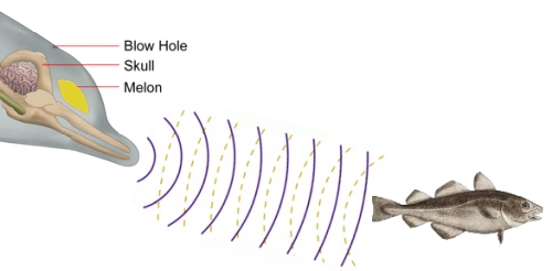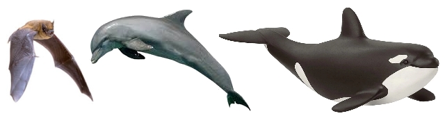 ![]() ![]() Echolocation is used by bats, dolphins, some whales, and other animals to determine the location of objects using reflected sound. This allows the animals to move around in darkness, communicate with others, and find things to eat. Killer whales, for example, use it to find and track their prey. Dolphins and toothed whales use echolocation by bouncing high-pitched clicking sounds off underwater objects, similar to shouting and listening for echoes. The sounds, sometimes at frequencies as high as 200,000 hertz, are made by squeezing air through nasal passages inside the blowhole. These soundwaves then pass into the forehead, where a big blob of fat called the melon focuses them. If the sounds hit something, the reflected sound is picked up through the animal’s lower jaw and passed to its ears. Dolphins and whales use this method to work out an object’s distance, direction, speed, density and size. Dolphins can detect an object the size of a golfball at a distance of 100 metres. By moving its head to aim the sound beam at different parts of a fish, a dolphin can even differentiate between species! ![]() As mentioned, Killer whales (Orcas) depend on this ability to navigate, communicate, and hunt prey. They echolocate by producing clicks and then interpreting the received echoes. The echolocation clicks are at frequencies between 45,000 and 8,0000 Hz. The clicks pass through the melon located in the whale's forehead, which acts as a lens to focus the sound waves into a beam, which is then projected forward into the water in front of the whale. The travelling sound waves bounce off objects in the water, and their echoes will reflect back to the whale. The echoes are received by the lower jaw, which focuses the 'image' of the object and sends it to the middle ear bones, the inner ear, and finally to the brain, where it is interpreted. Bats make echolocating sounds in their larynxes and emit them through their mouths. Most of these sounds, while very loud, are too high-pitched for humans to hear. Some bats use frequencies as high as 212,000 hertz. Bats can detect a flying insect up to 5 metres away, work out its size and hardness, and can also avoid obstacles in its path. To avoid being deafened by its own calls, a bat can actually turn off its middle ear as it calls, restoring its hearing a split second later to listen for the echoes. ![]() Other animals can also echolocate. Some nocturnal shrews use ultrasonic squeaks to explore their dark surroundings. Hedgehogs may use ultrasonic whistles. Humans who are blind can sometimes learn to avoid obstacles by listening to echoes bouncing off their surroundings. |