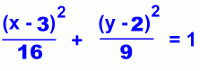 First, notice that the rule for translating an image is followed; the centre (3,2) is equivalent to a shift right 3 and up 2, and is apparent in the equation: