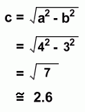 Notice that the focal distance is about 2.6 units from the centre of the ellipse. That would make the focal points F (5.6, 2) and F' (0.4, 2)