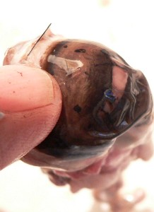 The two photos above clearly show the cornea, a thin clear film that lines and protects the outside front of the eyeball. It was strong enough to prevent a finger from being poked through it. Notice also that the pupil is just a hole.