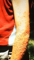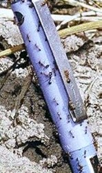 ![]() ![]() When we were in Florida we were amazed to learn about a then new pest which has invaded the southern United States. The fire ant is everywhere, especially in Florida, and it's a tiny but dangerous insect. Naturally, we had to investigate what would happen if we did disturb a mound. We carefully stepped onto one, and then very quickly took our feet away. The reaction was instantaneous. Tiny fire ants by the thousands came boiling out of cracks in the dirt, and within seconds the surface of the mound was covered in ants. Fire ants are active and aggressive, swarming over anyone or anything that disturbs their nest, whether it's animals, birds, livestock, pets, or people. An accidental encounter with a fire ant nest could leave you with burning pain, followed by tiny, itching pustules, and sometimes even more severe reactions including anaphylactic shock . These ants will swarm over anything that threatens their mound or that looks like food, whether it be old people, crawling babies, injured birds, bedridden hospital patients, or you just out walking. Fire ants individually are hard to identify because they look much like ordinary ants. They are a few millimetres long and reddish brown to black in color. Fire ants in a colony are probably most easily distinguished by their aggressive behavior and characteristic mound-shaped nest. Their nests have no obvious openings, but just under the surface are many tunnels, allowing thousands of ants to emerge in just a few seconds. Fire ants don't always live in soil; any dark, protected site with moisture and a supply of food will do. Fire ants will nest in rotten logs, walls of buildings, under sidewalks and roads, in automobiles, and even in dried cow manure. In rural areas, fire ants are having a major impact on ground-nesting animals, including insects, reptiles, birds and mammals. In some areas, fire ants have completely eliminated some species from the ecosystem. The average fire ant colony contains 100,000 to 500,000 workers, and up to several hundred winged ants. Most mounds contain only one egg laying queen, however multiple queen colonies are known to occur in some parts of the southern U.S. states. The mound of a new colony is not noticeable until a few months after a new queen begins laying eggs. The below-ground portion of a fire ant mound is a complex of tunnels and chambers that may extend a metre underground. The upper portion of the mound, above ground, can reach a height of 30 to 50 centimetres, but in sandy soils the mounds are very low, sometimes evident only by the colour of the soil. Mounds we observed in Florida were often almost impossible to see until you stepped on them ... a definite hazard if you were to stop walking while standing on one! Fire ant colonies have been found inside automobiles, trucks and recreation vehicles Traffic accidents have been caused by fire ants stinging the drivers of automobiles. Victims of highway accidents can be attacked by fire ants if they are thrown from their vehicles. Damage estimates in the U.S. range from millions to billions of dollars annually. In Texas alone, it is estimated that fire ants cost the state $300 million annually. The beef cattle industry suffers losses estimated at $67 million per year. Hundreds of millions of dollars are spent annually for control of the fire ant. |