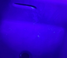 Apparently after using the toilet to poop, if you stand up to flush, the swirling water will send a fine mist of water droplets into the air which will contain tiny particles of fecal matter. These droplets will be deposited on all the surfaces near your toilet, including the sink, your toiletries, and most importantly, your toothbrush! This is similar to what happens when someone sneezes or farts. Here is a brief summary of this topic from the U.S. National Library of Medicine: "The studies demonstrate that potentially infectious aerosols may be produced in substantial quantities during flushing. Aerosolization can continue through multiple flushes to expose subsequent toilet users. Some of the aerosols desiccate to become droplet nuclei and remain adrift in the air currents. However, no studies have yet clearly demonstrated or refuted toilet plume-related disease transmission, and the significance of the risk remains largely uncharacterized".We're going to find out how much aerosolization occurs by doing a simple experiment. Clearly there are a number of variables here which we can't control, notably the size of the toilet and the strength of the flush. We'll do our best with the toilet we have. There is also the variability in poop size and texture; we speculate that diarrhea would probably provide the greatest droplet dispersal when flushing the toilet. Needless to say, we're not going to try to control that variable. If you're interested in how poop is produced, visit our page about the intestines. We'll simulate fecal matter in the toilet water with two varieties of fluorescent materials, a liquid and a powder. Both are non-toxic. These will show up using a small UV flashlight. We will invesigate the results after just one flush. The bathroom: ![]() ![]() ![]() All surfaces were thoroughly cleaned. We used our UV flashlight to check for anything that might fluoresce, but found nothing. (As you'll see later, fluorescent material will show up as white specks in the UV light photos.) Trial 1: Fluorescent liquid ![]() ![]() ![]() We deposited a copious amount of fluorescent liquid on the surface of the water in the toilet. It created a yellowish film, and much of it remained on the surface. We turned off the lights and flushed the toilet. Here's what we saw: ![]() ![]() ![]() ![]() There was clearly a large amount of the fluorescent liquid which had been aerosolized and deposited everywhere. The inside of the toilet, as you would expect, was covered. Disconcertingly, so was the sink, the wall over the sink, and all of the toiletries on the back of the sink, including my toothbrush! [This was difficult to capture in photos; the images had to be manipulated considerably to bring out the spatters that were easily apparent to the eye.] Trial 2: Fluorescent powder ![]() ![]() We redid the test with this material to see if the powder would distribute itself differently around the bathroom, with the thought that it might more closely simulate actual poopy water. It did seem to accumulate more on the surface of the water. ![]() ![]() Once again we had to heavily process these photos to make the spatter visible. It's worth pointing out that what was visible to the eye was very clear, and perhaps even more brightly that is shown here, making it obvious that our eyes are far better at seeing in the dark than an iPhone camera! There was little difference here from the first trial. Specks of fluorescent material, simulating fecal matter, were all over the sink and the toiletries at the back of the sink. Conclusions Clearly whatever was in the toilet bowl was aerosolized and spread around the bathroom. We will assume that if the water contained poopy stuff, bits of that would do the same. Flushing the toilet while standing up and with the lid up will deposit bits of fecal matter on your toothbrush, as well as anything else on your sink. The remedy for this disgusting fact is to either stay sitting or put the lid down when you flush. I also now keep my toothbrush in a small cover. |