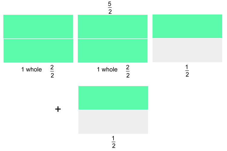 ![]() Let's look at how to add and subtract fractions. Part 1: Fractions With the Same Denominators The fractions are made from pieces that are the same size. Example 1: ![]() One has three 'quarters', the other has two 'quarters'. We're adding them. Here's a picture: ![]() 'Adding' means we want the total number of quarters. Since all the quarters are all the same size, we can just count them: ![]() Here's the question and answer without a picture: ![]() You're adding quarters, so you combine the tops (numerators), but the answer is still quarters, so its bottom (denominator) is still 4. "Three quarters plus two quarters is five quarters, or one whole and an extra quarter". Example 2: ![]() Both represent 'halves'. One has five halves, the other one half. We're adding them. Here's a picture: ![]() Because the pieces are all the same size (halves) we can just count them. ![]() Here's the question and answer without a picture: ![]() You're adding halves, so you combine the tops (numerators), but the answer is still halves, so its bottom (denominator) is still 2. "Five halves plus one half is six halves, or three wholes". Example 3: ![]() We're counting fifths, so it's just 2 + 4 - 3 = 3 "Two fifths plus four fifths minus three fifths is three fifths" Now let's look at what to do if the denominators are NOT the same. Move on to page two ... |
