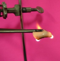 ![]() to find out just how easily they would burn. What we found out will shock you! ![]() ![]() ![]() We chose a prominently displayed brand, and decided to simulate what would happen if a person wearing artificial nails were to momentarily expose a fake nail to flame, perhaps when lighting a cigarette. In order to do this safely, we set up the apparatus, as shown above at the right, inside our school lab's fume hood, where the toxic vapours from the burning plastic would be safely drawn away. Not knowing in advance how flammable the nails were, we suspended them with forceps on a metal stand, so we wouldn't have to hold them while applying a flame. A pink sheet of paper was placed behind the setup to make the photos clearer. ![]() ![]() ![]() ![]() ![]() Within half a second of the flame touching the end of the nail, it began burning. Within two or three seconds, the nail curled into a burning blob, all the while emitting dense black smoke. The flame soon reached a height of about 5 centimetres. ![]() ![]() ![]() As the nail continued to burn, melting gobbets of plastic began to drip off the end. However, they burned so fast that they never had a chance to fall off the nail. The nail continued burning brightly for a full 30 seconds. ![]() ![]() We should point out that we did not apply the glue supplied with the nails. We can only assume that glue on the nails (it's ethyl cyanoacrylate, or 'superglue') would certainly not make them burn any less vigorously. ![]() The label on the box does say to keep the nails 'away from heat or flame' (in the very fine print). But clearly it would be very easy for someone wearing these nails to accidentally set them aflame, especially if that person is a smoker. Once the nail is burning, the hot melting plastic ('ABS plastic', according to the box) would run onto the person's finger, causing a serious burn. Attempting to put out the nail fire on clothing could set that on fire as well. Once set aflame, the nail would continue to burn for a long time, possibly causing an even more severe burn. Our advice: don't wear these things! Better yet, give up smoking! Additional Note: This test wasn't meant to be a scientifically exacting experiment, but we think the results speak for themselves. Actual nails in use would be attached to a finger, but half a centimetre or more of nail would still be exposed to the air. We didn't measure the times accurately, (although we'll stick by our estimate of half a second to ignite), nor did we measure the temperature of the burning plastic. However, the burnt plastic, when extinguished with a rag, was too hot to touch. |