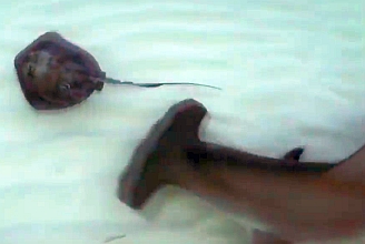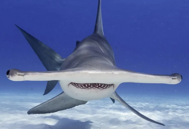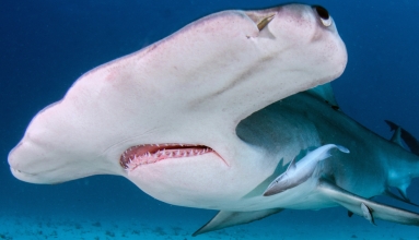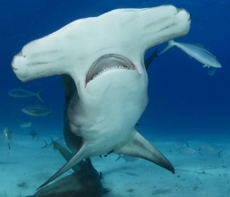 ![]() ![]() Great hammerhead sharks are apex predators and can be found worldwide in coastal, warm waters. Unlike other hammerhead sharks, great hammerhead sharks are solitary, migrating upward of 1,200 km alone. This shark's name comes from the unusual shape of its head, which helps it to find and immobilize its favourite meal: stingrays. The great hammerhead shark is the largest of all nine hammerhead species. These sharks have an average length of 4 metres and weight of 230 kilograms. (The longest great hammerhead shark ever recorded was 6.1 m long, and the heaviest was 450 kg. The species is distinguished from other hammerheads by its straight hammer-shaped head. ![]() The shark's eye placement, on each end of its very wide head, allows it to scan more area more quickly than other sharks can. Like other hammerhead species, great hammerhead sharks have long, serrated teeth and use their hammer-shaped heads to detect and eat prey. ![]() Their heads are equipped with electrical receptors that can sense potential prey, including those hiding in the sand. Hammerheads are aggressive hunters, feeding on seafloor fish, stingrays, octopuses, squid, crustaceans and other sharks. The shark uses its wide head to trap stingrays by pinning them to the seafloor. Hammerheads do not actively seek out human prey, but are very defensive, and will certainly attack when provoked. Great hammerhead sharks have a faster growth rate than other hammerhead species, and reach maturity earlier, between 5 and 9 years old. They mate via internal fertilization, and give birth to live young – anywhere from 6 to 42 pups – once every two years. Great hammerheads can live up to 44 years, and possibly longer. Great hammerheads are particularly threatened by the global shark fin trade because of the large size of their fins; they are an endangered species. ![]() ![]() ![]() ![]() |