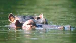 Small birds often accompany hippos, riding on their backs and digging parasites out of the hippos' skin.