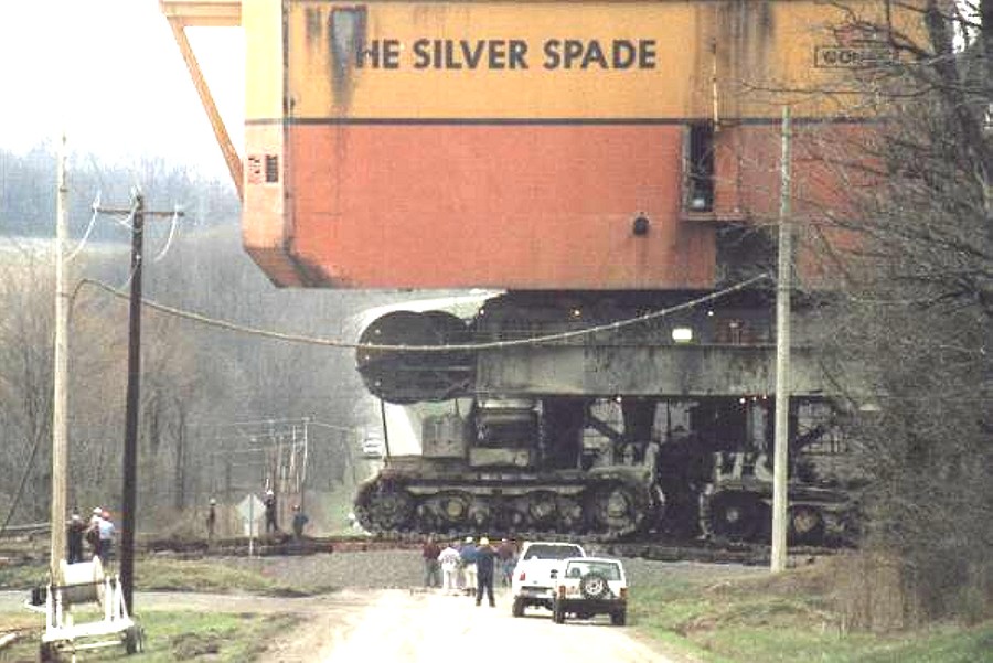 American-built shovels, the enormous Silver Spade is seen here crossing a highway. Its size (although not its payload) rivals that of some drag lines. Its bucket capacity is 79 cubic m (105 cubic yards), a load of 145 tonnes, and the Spade itself weighs 6,400 tonnes. Find out more about these monsters on our Extreme Shovels page. |