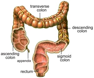 ![]() ![]() Where the ileum of the small intestine joins the ascending colon, there is a small side pocket called the cecum, tipped by the appendix. The other end of the large intestine is the rectum, a short canal which exits the body at the anus. The size of the large intestine in various animals is a reflection of their diet. Herbivores like cattle have a much more complicated intestine, while carnivores have a much simpler one. As omnivores, humans have a large intestine that is in between in relative size and complexity. ![]() The colon, which makes up most of the large intestine, is much larger in circumference than the small intestine, which it surrounds in an arch. Inside it is covered with mucous, and its inner surface is convoluted; the surface itself is made up of deep channels called crypts; at the bottom of these crypts new cell growth occurs. The large intestine does not produce its own digestive enzymes, but instead contains large numbers of bacteria. These bacteria provide the enzymes to digest and utilize nutrients from whatever is left of the stomach contents after passing through the small intestine. This material already has had 90% of the water removed before it even enters the colon. ![]() Normal feces are about 75% water and 25% solids. The solids are mostly undigested organic matter, fiber, mucous and bacteria. The usual brown colour of feces is due to several chemicals which are produced by the bacteria as they break down the remaining nutrients. The feces' odour is caused by gases which are also produced by the bacteria, including mercaptans and hydrogen sulfide. Material that enters the colon is moved along its length and churned about by various processes. First of all, more material entering the colon from the small intestine provides some pressure to keep things moving. In addition, muscles in the various segments of the colon can contract, mixing and breaking up the material inside so it can be more easily absorbed. There are also muscle contractions which run along the length of the colon both ways to churn the contents, and help to move the material along. ![]() As the rectum fills, the body's defecation reflex, a relaxation of both the internal and external anal sphincter, allows defecation through the anus. Defecation can of course be postponed, by intentionally constricting the external sphincter; this causes the internal sphincter to tighen also. The end product of bacterial digestion of cellulose and other carbohydrates in the colon is intestinal gas, not all of which can be absorbed by the colon; instead excess gas is passed through the anus. Intestinal gas is mostly nitrogen, oxygen, carbon dioxide, hydrogen and methane. However, the characteristic odour of passed gas is due to small quantities of a few other substances, including hydrogen sulfide and mercaptans. Most of intestinal gas is the byproduct of bacteria breaking down material in the colon, especially material that the small intestine couldn't fully utilize, ... but some of it is also due to carbon dioxide produced from the interaction of various secretions, and air which is swallowed while eating. Bacteria in the large intestine also produce B vitamins, but these aren't absorbed; they're released from the body in the feces. This may explain the behaviour called coprophagy, or eating of feces, which is observed in rodents, rabbits and other animals. It may be a behavioural adaptation that allows them to recover these valuable nutrients. |