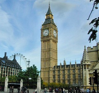 ![]() Big Ben, located in the Houses of Parliament in London, is one of London's best-known landmarks, and looks spectacular at night when the clock faces are illuminated. You even know when parliament is in session, because a light shines above the clock face. The name Big Ben actually refers, not to the clock-tower itself, but to the ten-tonne bell hung within. The bell was named after the first commissioner of works, Sir Benjamin Hall. The four dials of the clock are each 7 metres long and wide; the minute hand on each is 4.3 m long, and the numbers are 60 cm high. Big Ben keeps excellent time, and has seldom ever stopped. This is remarkable considering that the hands on the clock are exposed to wind and weather, and that the clock was built in 1851-1854, containing huge mechanisms for turning the hands, accurate to within 1 second per day. Two months after it officially went into service, the bell Big Ben cracked, the cause being a hammer too heavy for the bell it was hitting. After redesigning the hammer, the bell was turned slightly so the crack wouldn't be struck by the hammer. This is the bell as you can hear it today; with the crack, it has a distinctive but less-than-perfect tone. During WWII, in 1941, an incendiary bomb destroyed the Commons chamber of the Houses of Parliament, but the clock tower remained intact and Big Ben continued to keep time; the unique sound of its bell was broadcast to the nation and around the world as a symbol of hope. |