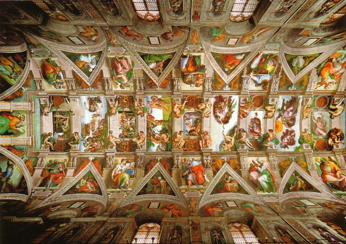 'The Creation of Man' is just one panel on the ceiling ... it's slightly right of center. See a close-up