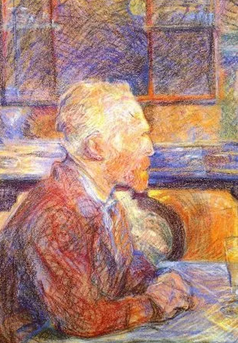 This pastel portrait, painted by Toulouse-Lautrec when he was 23, shows his 34-year-old friend Vincent van Gogh. The bright green and very potent alcoholic beverage absinthe became the 'creative fuel' for the artists of the day. It became known as "the queen of poisons", favoured by Lautrec, Picasso and van Gogh.