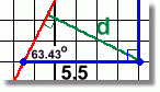 ![]() Method 2: Trigonometry ![]() Step 1: Draw the Lines Draw a horizontal line from (4, 1) to the line y=2x+4. It meets the line at a point with y coordinate 1. Substituting y=1 in the line equation y=2x+4 yields the value of -1.5 for x. So the left corner of the triangle is (-1.5, 1). Draw a vertical line from (4, 1) to the line y=2x+4. It meets the line at a point whose x coordinate must be 4. Substituting x=4 in the line equation y=2x+4 yields the value of 12 for y. So the top corner of the triangle is (4, 12). Step 2: Find Θ Given where angle Θ is, we now know that: - the opposite side of the large triangle has length 11 - the adjacent side has length 5.5. ![]() Step 3: Find d: ![]() ![]() Method 2 gives an answer of 4.92 for the distance from point (4, 1) to line y=2x+4 |