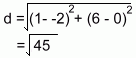 ![]() Method 3: Find the Area of a Triangle Using Coordinates ![]() [There are some problems with this method. The selection of points 'by inspection' shown below won't always work so nicely. And the area formula used is not in high school math] Step 1: Find two points on the line. By inspection, we chose x values of -2 and 1 as likely values to make the required triangle. Substituting each into the line equation gives points (-2, 0) and (1, 6). We now have the coordinates of the three corners of the triangle: (-2, 0), (1, 6) and (4, 1) Step 2: Find the area of the triangle. This formula is one which you probably haven't seen before. Given the three coordinates of a triangle (x1, y1), (x2, y2), (x3, y3) the area is given by A = | (1/2)(x1y2 + x2y3 + x3y1 - x2y1 - x3y2 - x1y3) | Using this formula with the points we have: (x1, y1), (x2, y2), (x3, y3) (-2, 0), (1, 6), (4, 1) A = | (1/2)(x1y2 + x2y3 + x3y1 - x2y1 - x3y2 - x1y3) | A = | (1/2)(-2x6 + 1x1 + 4x0 - 1x0 - 4x6 - -2x1) | A = | (1/2)(-33) | A = | - 16.5 | A = 16.5 Step 3: Find the base of the triangle. This is the distance between points (-2, 0) and (1, 6) ![]() Step 4: Find the height of the triangle. We now know the area and base of the triangle. We can solve for the height d ![]() Method 3 gives an answer of 4.92 for the distance from point (4, 1) to the line y=2x+4 |