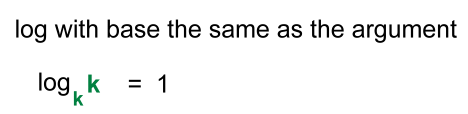 ![]() Rule 5: logkk ![]() Use this rule when the base of the log is the same as the argument. Here's an example: ![]() This makes sense, because when you find a log, you're just finding the exponent of 3, which here is an invisible '1'. RULE 5: logkk | RULE 6: logkkn | RULE 7: blogbk | PRACTICE 1 | PRACTICE 2 |
