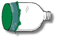 The first step is to cut off and discard the bottom half of the pop bottle. Cut out a piece of plastic from the garbage bag, and tape it loosely but securely to the opening on the top half of the bottle. Make sure the plastic is attached well; it must make an airtight seal. The plastic should be loose and floppy in the center.