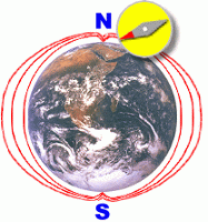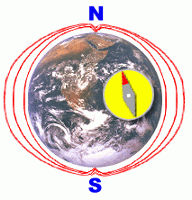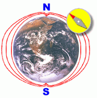 ![]() ![]() The Earth is a giant magnet. Its hot liquid centre core contains iron, and as it moves, it creates an electric curent that causes a magnetic field around the Earth. The Earth has a north and south magnetic pole. These poles aren't quite lined up with the geographic North and South Poles on a map, because the moving inner core's poles are always wandering around. ![]() The north magnetic pole in 2008 was situated near Bathurst Island in northern Canada, about 1600 km from the North Pole. (The south magnetic pole is near the Adélie Coast on the continent of Antarctica, about 2600 km from the South Pole). Both pole positions can wander up to 10 km per year. Because the Earth has a field just like a magnet, it attracts things. In particular, it will attract a small magnetised needle. A needle mounted in a case that lets it move freely will point to the north magnetic pole. We call this needle a compass. Using a compass in the north can give you problems. The needle is actually pointing at the magnetic pole, which is not right at the geographic pole. So your compass may read north, when 'north' is actually in a slightly different direction. Airplane pilots use a compass and map which provide corrections for this 'magnetic variation', to allow them to know which way is true north on the map. These have to be updated every few years as magnetic north wanders away from, or towards, actual north. ![]() A compass needle on the surface of the Earth will point along the magnetic field lines, towards the north magnetic pole. The needle is actually a tiny magnet, with the north end painted red. This red end is attracted to the 'north magnetic pole'. This means that, magnetically speaking, the north magnetic pole of the Earth is actually a south pole! We call it the 'north' magnetic pole because it's near the top of the Earth, or geographic north, but really it's a magnetic 'south' pole. That's why a compass needle's north end points to it. Earth's magnetic field lines also attract particles from outer space. As particles stream down through the atmosphere towards the magnetic poles, they cause the northern lights. You can also use a special sort of compass to tell you how far you are from the north magnetic pole. If you mount the needle sideways, so that it can dip up and down, you have a dip compass. The closer you are to the north magnetic pole, the more the needle will tilt downwards. Right at the pole, the needle will point straight down. Measuring this 'dip' at the place you're located will tell you how close to the pole you are. ![]() ![]() ![]() |