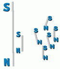 ![]() First, straighten out the paperclip. Then rub the south end of the magnet down the lower half of the paperclip. Push hard. Repeat this about 50 to 75 times. Reverse the magnet and the paperclip, and rub the north end of the magnet down the upper half of the paperclip. Repeat this also about 50 to 75 times. You are pulling all the particles that make up the paperclip in the same direction. All their north poles will point in one direction, and all their south poles in the other. ![]() Try lifting some more paperclips. You can use a compass needle to decide which end of your paperclip magnet is north, and which is south, and mark the ends with paint. Do you think it's possible to cut this magnet in half, and make one magnet with just a north pole, and one with just a south pole? Let's find out. ![]() ![]() |