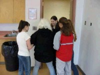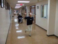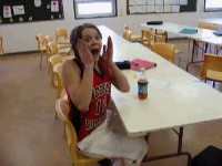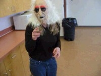 This video was made as a group by a grade 7/8/9 class. It could best be described as a comedy/drama/horror movie, in which a werewolf named Janine stalks the halls of Worsley School. Below are some stills from the movie.