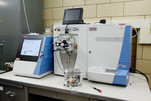 The atom is ionised by knocking one or more electrons off its outer shell, to give it a net positive charge. Mass spectrometers always work with positive ions. The vaporized sample passes into an ionization chamber where an electrically heated metal coil gives off electrons that bombard the sample and knock out electrons from its atoms, ionizing them.