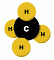 ![]() Methane is a colourless, odourless gas that is found in many places in the environment. It is the main component of natural gas, a mixture containing about 75% methane (CH4), as well as 15% ethane (C2H6), and 5% other hydrocarbons. Methane is produced on Earth mainly through the anaerobic ('without oxygen') decomposition of plant and animal matter by bacteria. This decomposer is at work everywhere, helping dead organic matter to rot, and producing methane on the ground, and especially in landfills. Natural gas, which is about 75% methane, is used as an energy source. Your home may be heated by natural gas. A trace amount of a smelly sulfur compound (tertiary-butyl mercaptan and dimethyl sulfide) is added to natural gas, to give it a detectable odour in case of leaks. Natural gas and methane are not poisonous if breathed, but they displace oxygen from the air, and will cause suffocation, as well as being highly explosive. Methane can be manufactured commercially by heating bituminous coal (see below). In the chemical industry, methane is a raw material used in the manufacture of methanol, formaldehyde, chloroform, carbon tetrachloride, and other chemicals. But the principal use of methane is as a fuel, for heating and to produce electric power. Here are some diagrams showing the chemical structure of the methane molecule. It is made up of a single carbon atom, joined by covalent bonds to four hydrogen atoms. Carbon has a shortage of four electrons in its outer shell; each hydrogen atom provides an electron to share with each of these 'vacancies'. ![]() ![]() Methane is the primary constituent of natural gas, a common heating fuel. Natural gas can be found in deposits beneath the surface of the earth, often in conjunction with petroleum deposits. Before it is distributed, natural gas is processed. The heavier hydrocarbons (propane and butane) are removed first. Contaminants like hydrogen sulfide (which smells bad, is highly poisonous, and is the dangerous component in 'sour gas'), must also be removed. The clean gas is then distributed by pipeline. Methane can also be produced by heating coal, a combustible rock formed from the remains of decayed vegetation. Coal that contains more than 15% burnable material is called bituminous coal. When coal is burned in a controlled fashion, various substances can be collected, including methane, water, carbon dioxide, ammonia, benzene, toluene, naphthalene, oils, tars, and sulfur-containing products. What remains is mostly carbon, called 'coke', and is itself an excellent fuel. However, it may contain highly toxic metals such as arsenic and lead. Obviously, uncontrolled burning of coal as a fuel will release all of these pollutants into the atmosphere, unless they are collected by various filtering methods. Animal burps and farts contribute an astonishing 75 million tons of methane gas into the atmosphere each year. Much of the world's livestock are ruminants, such as sheep, goats, camel, cattle, and buffalo. They have a unique, four-chambered stomach, one of which is called the rumen. In an animal's rumen, bacteria break down food ... and release methane as a by-product. A newly discovered source of methane is in the form of methane hydrates. These are chemical compounds containing methane, which are found in arctic ice and seafloor sediments. Some researchers estimate there may be enough energy from this source to supply us for hundreds, maybe thousands, of years. However, little is known at present about their location or quantity. |