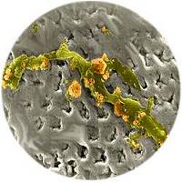 Plaque and tartar on a tooth. Byproducts from bacteria growth cause tooth decay and bad breath.