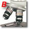 The lenses can be rotated to low power (x40), medium (x100), or high power (x400). Always start with the low power lens (the short one); move it as close to the slide as possible (as you watch from the side), using the coarse focusing knob.