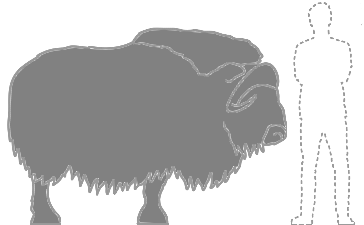 ![]() The muskox (Ovibos moschatus) is a hoofed mammal native to the Arctic. It is noted for its thick coat and for the strong odour emitted by males during the seasonal rut, from which its name derives. This musky odor has the effect of attracting females during mating season. Its Inuktitut name "umingmak" translates to "the bearded one".