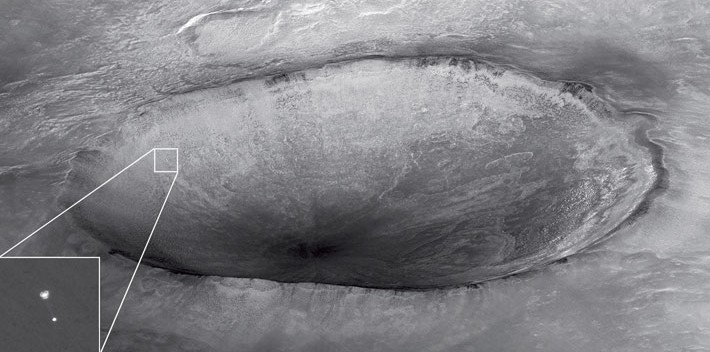Victoria Crater is just 800 metres wide, as seen in this satellite image.