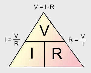 ![]() Ohm's Law describes the mathematical relationship between current, voltage, and resistance in an electrical circuit. It was discovered by Georg Simon Ohm in 1827. An electric circuit is formed when a conductive path is created to allow electric charge to continuously move. This continuous movement of electric charge through the conductors of a circuit is called a current, and it is often compared to the flow of a liquid through a hollow pipe. The force causing charges to 'flow' in a circuit is called voltage. Voltage is a specific measure of potential energy that is always relative between two points. A certain amount of voltage being present in a circuit is a measurement of how much potential energy exists to move charges from one particular point in that circuit to another particular point. Current tends to move through the conductors with some degree of friction, or opposition to motion. This opposition to motion is more properly called resistance. The amount of current in a circuit depends on the amount of voltage and the amount of resistance in the circuit to oppose current flow. Just like voltage, resistance is a quantity relative between two points. For this reason, voltage and resistance are often stated as being 'between' or 'across' two points in a circuit. Current I is measured in amperes (amps), unit A Voltage V is measured in volts, unit V Resistance R is measured in ohms, unit Ω Each unit of measurement is named after a famous experimenter in electricity: The amp after Andre M. Ampere, the volt after Alessandro Volta, and the ohm after Georg Simon Ohm. Ohm's Law Ohm’s discovery was that the amount of electric current through a conductor in a circuit is directly proportional to the voltage impressed across it, for any given temperature. Ohm expressed his discovery in the form of a simple equation, describing how voltage, current, and resistance interrelate: V = I·R This can be rearranged to solve for each of the three values: V = I·R I = V/R R = V/I Here is an example of how to use Ohm's Law: "A simple circuit has a 36 V battery, and the current in the circuit is 4 A. Find the resistance". R = V/I R = 36/4 R = 9 Ω Here is a triangle diagram to help you remember the three rearrangements of Ohm's formula: ![]() |