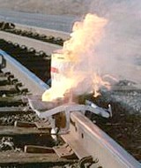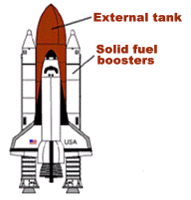 ![]() ![]() Aluminum can also be anodized, which thickens and hardens the aluminum oxide coating, making it shiny like pure aluminum. The reaction of aluminum with oxygen is an example of an oxidation reaction (which just means combining chemically with oxygen). A similar oxidation reaction is the combining of iron with oxygen to form iron oxide; we call this process by a more familiar name: rusting. Both of these reactions are exothermic, but at room temperature the heat produced is small and is quickly dissipated into the surroundings. It is a different story when aluminum is heated to a high temperature first, before exposing it to oxygen. When that happens, the reaction with oxygen happens very fast, and releases a lot of heat ... so much heat, in fact, that you can stop applying heat to the aluminum; the heat from the reaction will be enough to keep the process of rapid oxidation going. Not only will the reaction be self-sustaining, but you don't even have to rely on the oxygen in the air to keep it going. You can instead add a compound containing oxygen to the process, and the reaction will occur by pulling oxygen from this material. This makes for some very useful applications, as you will see. ![]() ![]() A ribbon of magnesium is ignited to provide the high temperature needed to start the reaction. Then the aluminum combines with the oxygen from the iron oxide, releasing sufficient heat to maintain the reaction. The left-over metallic iron (from the iron oxide) melts in the high heat, and fills the gap between the rails! ![]() ![]() The solid core boosters are lined with a solid mixture of aluminum powder and ammonium perchlorate. This latter substance is the oxidizer ... it provides the oxygen for the reaction. As the mixture reacts, aluminum converts to aluminum oxide, which is vaporized by the high temperature; the escaping gases provide thrust to the rocket. Once the solid fuel (aluminum and ammonium perchlorate) has been ignited, there is no stopping the reaction until the fuel is spent; solid booster rockets can't be stopped and restarted like liquid fueled ones. The shuttle also has a liquid fuel tank which holds both fuel and oxidizer; hydrogen (stored as a liquid) combines with oxygen (stored as a liquid) to produce water vapor and heat; high temperature water vapor escaping from the rocket adds to the thrust. Ammonium perchlorate is a chemical compound with the formula NH4ClO4. It is a powerful oxidizer. It generates toxic gas and extremely high temperatures as it decomposes. It is used in solid rocket propellants, as described above, as well as in some fireworks. ![]() In a solid fuel rocket like those strapped to the space shuttle, oxygen from ammonium perchlorate combines with aluminum to produce All the fuel is burned within a few minutes. This equation describes the reaction: ![]() ... plus enormous quantities of heat With the space shuttle, in addition to the two solid-fuel rocket boosters (which provide only about 70% of the total thrust at lift-off), there is also a main engine on the orbiter whose fuel (hydrogen) combines with an oxidizer (oxygen), both of which are stored in the main orange external tank. The equation for this much simpler reaction is the familiar one that creates H2O: ![]() "Dr. Joe & What You Didn't Know" by Dr. Joe Schwarcz |