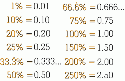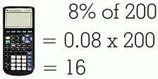 One drawback of this quick method is that you will need to memorize some conversions. But your teacher will expect you to know them anyway, so that's nothing to worry about. The other drawback is that the quick method won't work for percents for which you don't know the fraction, or for which the fraction isn't a simple one. It also won't work if the calculation is too difficult to do in your head. But watch out for special cases where you can reverse the quetion. For example, you probably can't do 80% of 50 in your head. But the answer will be the same if you reverse it: try 50% of 80. It's obviously 40. Watch out for questions where this trick will work! However, if you were asked to find 29% of 123.9, the quick method isn't very useful. You're unlikely to be able to do twenty-nine hundredths of 123.9 mentally. For problems like this, which are the kind you're most likely to encounter in real life, we need a new method. Method 2: Using Decimals and a Calculator: ![]() This method requires that you either know the decimal value for the percent, or can find it. Fortunately it is very easy to change a percent to a decimal. Since a percent is really just a fraction over one hundred, you will really be dividing by 100, which means you just need to move the decimal point two places to the left. In order to do a question like this: you must convert 28% to 0.28 by moving the decimal back two places. Then you use a calculator, remembering that 'of' means that you multiply: Here are some more examples. Remember that you can always use the calculator on your phone!