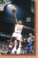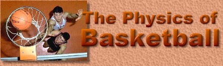 Understanding how things happen in a basketball game, from a physics point of view, is not necessary for a good player. A basketball player knows instinctively what to do in any given situation. Through thousands of hours of practice and game play, his brain has the correct sequence of muscle movements 'hard-wired' into it, much like you or I can walk without thinking about where to move the legs, and by how much. This is called 'kinesthetic memory'. A good pro basketball player has these game play reflexes because he began learning the moves as a child, when the brain is most receptive to imprinting a reflexive behaviour. It can be argued that such imprinting, through constant practice, must begin in childhood if the athlete is to become a star pro player. Nevertheless, it can be very useful to understand the physics behind some of the skills in basketball. A physical analysis of a player's movements, combined with a knowledge of the correct forces to apply at the right time, can be used to make a good player better. Scientific analysis like this is used in many sports, from figure skating to baseball. Let's look at some of the simpler physics rules being applied in every basketball game. Spinning the ball when you shoot is not done to affect air resistance, or to make air resistance cause the ball's path to curve, as is the case in baseball. ![]() The impact of a hard pass can be lessened, making it less likely the ball will knock the wind out of you, if it is caught into the body. The ball coming at you has momentum, m·v. By increasing the time over which you decelerate the ball, you lessen the force. In other words, since m·v = F·t, then F = (m·v) / t ... increasing t causes F to get smaller. This is the same principle that makes an air bag in your car work. The time over which you decelerate is lengthened, resulting in a lower force. Of course, catching a ball into your chest has other benefits. It makes it less likely you'll drop the ball, and harder for someone to grab. ![]() The more air pressure a basketball has inside it, the less its surface will bend or deform during a bounce, and the more its original energy will be stored in the compressed air inside. Air stores and returns energy more efficiently than the material that the ball is made from. If the ball is underinflated, some of its energy is wasted in deforming the ball as it bounces, and the ball will not rebound very high. For the most elastic collision possible between the ball and the floor, you want a highly pressurized ball. (But you knew that already, didn't you! Now you know why!) The material you bounce the ball on is also very important. Think about how high it would bounce on a carpeted floor. A soft floor material will flex when the ball hits it, and this will steal some of the ball's energy. Clearly the harder the surface, the better. A players' shoes must have good traction, which is the same as saying that the coefficient of friction between the shoe and the floor must be high. Friction is the force that opposes the motion of two surfaces that are in contact. Every surface is rough, on the microscopic scale, and when two surfaces come in contact, the high points on each surface temporarily make contact. The opposing or attracting forces of the surface molecules cause a 'frictional' force. A basketball player will also make use of static friction; a foot firmly planted, rather than slipping across the floor, will provide more friction when he has to stop or turn suddenly. This is because static friction ('pushing off') is greater than sliding friction ('sliding'). It is also why shoes must have a good grip on the floor in any direction you push off from, and why some shoes are unsuitable for basketball ... they may have lots of forward traction, but slip too easily when pushing sideways. It's just like driving ... spinning tires have less frictional force than non-spinning ones. ABS systems keep the tires from sliding, and maintain more friction. Pro basketball players seem to float in the air while they're at the basket with the ball. Of course, this is just an illusion; they fall at the same rate as they rose into the air, assuming they don't make contact with anything. What makes the time seem longer is probably because after their bodies reach their highest point, they extend their arms upward, giving the illusion that they're still going up. They are also moving forward when they jump, which also affects our perception of time. Here's an example. Imagine firing a bullet from a rifle, directly at a monkey hanging from the branch of a tree a kilometre away. If the monkey lets go of the branch just as you fire, will you hit him? Leaving aside the environmentally sensitive issue of whether or not we should be shooting monkeys out of trees, this is actually a well-known physics problem. In fact, the moment the bullet leaves your gun in a horizontal line, it will begin to fall. It will fall with exactly the same acceleration downwards as the monkey. Regardless of how far away the monkey is, when the bullet reaches the tree, it will have fallen the same distance as the monkey. It will hit him! This seems unlikely, since we usually visualize bullets as travelling in a straight line. But as any hunter will tell you, they do fall. If aimed horizontally, the bullet will hit the ground in the same time another bullet would, if you dropped it from the same height as your gun. The 'hang time' of a pro basketball player at the net seems longer because he is moving forwards and upwards. It is harder to consciously be aware of how long it took him to go up, when he is also moving forwards. But if you used a stopwatch and a slow-motion replay, you would discover that the time from when he left the floor to when he stops moving upward is exactly equal to the time he takes to fall, and there is no hang time! The instant he stops going up, he starts to fall. But this is hard to see when things happen fast and there is f