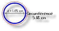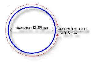 You know what 'PI' is ... it's a number with the value 3.14, and it's used to find the circumference and area of a circle. But did you ever wonder where PI came from? Did somebody make it up? Was it invented? Where does it come from!? PI is a truly magical number! The symbol itself is a Greek letter. ![]() But where does the number come from?!? Imagine drawing some circles. You could draw a really tiny one. Or maybe a bigger one that fills your page. Or perhaps a large one on the blackboard. Even a gigantic one out in the field behind the school. Now imagine carefully measuring the diameter of each circle, or the distance across the middle , and then each circle's circumference, which is the distance around the outside.. Here's an example: When you do the calculation: 5.18 divided by 1.65 ... ...the result is the magic number 3.14, or PI! Let's try it for a bigger circle: When you do the calculation: 40.5 divided by 12.89 ... ...the result again is the magic number 3.14, or PI! |