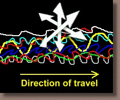 In actual situations where we want to polarize light, we often want some of the normal light to get through too, so we can see the object we're looking at. This is achieved by making slits, which are actually long narrow scratches, on a piece of glass. The scratches must be very narrow and close together, because individual light waves are tiny. A bit of normal light can still get through the glass between the scratches, but most of the light is forced to try to vibrate through them ... and only the light vibrating along the length of a 'scratch' can get through.