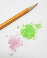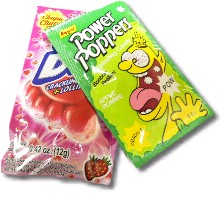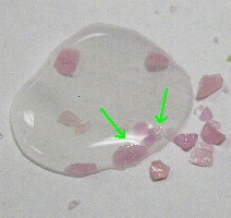![]() ![]() What's going on with these candies? Why do they crackle? What causes the effect? On this page we'll answer all these questions, and others too! ![]() ![]() The crystals come in all sizes, from tiny ones that resemble powder to much larger ones like the one shown at the right. What makes them pop? The answer is really simple; each crystal has bubbles of CO2 embedded in it. When the candy gets wet, it starts to dissolve, and the carbon dioxide gas is released. It pushes its way out of the thin layer of candy remaining, causing a popping noise. ![]() ![]() If the crystals become surrounded by water, as in the picture at the right, you can't hear the popping, but you can clearly see the carbon dioxide gas bubbling out of the crystals. (This is difficult to see in the photo, so we highlighted the bubbles with arrows). ![]() This method also produced another effect which was quite noticable. Many of the crystals began jumping around; we tried to simulate this in the animation at the left. Look closely. What supplies the force that causes these particles to move? The answer is that the escaping carbon dioxide supplies a force to a piece of crystal just like exhaust gases from a rocket supply a force to lift it. This is an illustration of Newton's first law. ![]() Collecting the gas and testing it (by seeing if it will cause a burning piece of wood to extinguish, for example) would be quite easy. The question that now immediately comes to mind is whether enough of the gas can be collected to actually make use of. That's what we tried to do next. ![]() ![]() Adding an eyedropper full of water to the balloon caused the crystals to begin to dissolve; as we sealed the top, the balloon clearly began to expand as the amount of carbon dioxide in the air inside the balloon increased. Although we made no attempt to release and store the gas, it would be quite easy to do. We hope this demonstration gives you some ideas about how you might use the candy to generate carbon dioxide, and what you might do with it. I once emptied about ten packages of the crystals into our cats' litter box after refilling it with clean litter. It made a nice pile at the back, which the cats ignored. Until one of them managed to pee on the pile of crystals. From the speed with which she exited the box, I assumed that she was rather upset. |