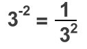 The 'Negative Exponent' rule isn't difficult to use, but it's a little unusual. Let's start with this example, that doesn't use any exponent rules, just simple powers: By writing out all the 3's and reducing the fraction, only a '1' remains on top, but two 3's are clearly left behind on the bottom. Now let's do the same question using the Quotient Rule: (subtract the exponents) We have just done the same question two different ways, and come up with different answers. Since the question was the same each time, the answers must be identical. This means that: Here you see the negative exponent rule illustrated. When there is a negative number for an exponent, the answer isn't negative at all; it's a fraction! You can think of the negative sign in an exponent as really meaning "one over", with the actual question appearing on the bottom of the subsequent fraction. Here's another one: According to the rule, it should equal: The Negative Exponent Rule says: "A negative exponent can be replaced by 'one over', and the rest of the question goes on the bottom of the fraction" Here's one more example: Zero Exponent | Negative Exponents |