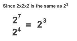 The Quotient Rule can be used when you're dividing powers. What's left over is the answer. Have a close look at this worked-out example: Do you see how the rule works? Just subtract the exponents! The Quotient Rule says: "When dividing two powers that have the same base, you keep the base and subtract the exponents". Here are a few questions for you to try on your own. Again, when your mouse pointer is placed over the correct answer, it will tell you. We won't use final answers, just the answer to the quotient rule. Find the answer: Find the missing power: If yes, then you're ready to try another page. Next is the 'Power Rule' Zero Exponent | Negative Exponents |
