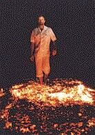 Wolves may the most complex social order of any animal alive. They mate for life, they teach their young to play, they live with an extended family, they have a great sense of humour, and they're innately curious. Do you know what the strangest thing is? Because of the wolf's mythical image as a killer, even a killer of humans, people are afraid of wolves. But they'll stop at the side of the road in a national park to feed bears, which have a warm, cuddly image (again thanks to hundreds of years of fairy tales!). In fact, there are dozens of cases every year of unprovoked bear attacks on humans ...but there has never been an authenticated case of a healthy wolf killing a human! I don't know about you, but if I was lost in the bush somewhere, a howling wolf-pack might not bother me too much ... but the knowledge that a bear was in the area would have me sleeping in a very tall tree! Return to Index Sobering Up a Drunk You're at a party, and ready to leave. Your friend has had way too much to drink, and is barely capable of standing, let alone driving. How can you sober him up? Lots of people have answers for this one...you've probably used one or two of them yourself. Stand him up, get him moving around. Give him something to eat, maybe bread, to soak up the alcohol. Lots of black coffee. Fresh air. The truth is, none of these remedies do a darn think to make a person less affected by alcohol! Before we look at why, lets examine a few facts. Alcohol affects your coordination and reaction time, which is why you shouldn't drive if you've been drinking. Any amount of alcohol will have an effect... even just one drink. It may be less noticeable on heavier people, or more experienced drinkers, but the impairment in coordination and reaction time, even if slight, is measureable. In an emergency on the road, when split seconds and good judgement count, even a tiny decrease in your skills can cause an accident. However, the legal definition of impairment is considerably higher ... for simplicity, we'll call it '80 units of alcohol' in your bloodstream (in Canada). This is an amount that, while it is impairing your reflexes, may not be noticeably doing so if you are of average weight. You may legally drive a vehicle, despite your impairment. The question we want to deal with here is how to reduce your impairment if your alcohol consumption has left you with far more than 80 units in your bloodstream. Let's say your reading is 140 units. What can you do about it? As already stated, the answer is 'nothing'. Here's why. Your reading of 140 units is a measure of how much alcohol is already in your blood. Your body has the ability to remove this poison from your bloodstream, but it can do so at only 15 units per hour. This number is a function of the working of your internal organs, such as your liver, and cannot be changed by you. Short of having total blood replacement in a hospital, there is nothing you can do to speed up this process. If your blood alcohol level is 140, and you need to reduce it to 80 in order to legally drive, the only thing you can do is wait 4 hours (15 less every hour, remember?). So what about all the common remedies for drunkenness? Well, mostly they just improve the person's appearance of soberness, and the way he feels. You may even get him looking and feeling completely sober. But those 140 units of alcohol are still there in the blood, slowly disappearing at the inflexible rate of 15 per hour! Coffee makes you a wide-awake drunk, as does fresh air and exercise. Eating and drinking may in fact soak up some of the alcohol in the stomach, but that's not what's making you have a high reading ... and it will be released to the blood eventually. All you are doing is preventing the blood alcohol level from going above 140! So is there anything you can eat while you are drinking to keep you below the '80 units' mark? Well, yes ... eating while drinking slows the absorption of alcohol into the bloodstream slightly, so if you are drinking slowly enough, it might help. The problem is that most people, because they are not feeling impaired so quickly, tend to drink more. And the snack foods that commonly accompany alcohol are usually high in salt content, which also makes you drink more! The simple answer? If you have had anything to drink at all, don't drive; and if you're over the legal limit, the only thing that will make you 'legal' (ie: impaired, but not legally so), is time. Return to Index Fire Walking ![]() This is true. The ability to walk on fire has been ascribed to many things, depending on who does it. Faith, intensity of religious belief, trance, or purity of soul, have all been given as reasons. In fact, the real reason it works has to do with heat conductivity. Magicians who handle hot metal rods, or put molten lead in their mouth, or plunge their hand into liquid nitrogen, all know that a layer of moisture on the skin protects it, briefly, from intense cold or heat. In particular, firewalking (not to mention the thought of firewalking!) causes the feet to sweat profusely. This layer of moisture, appearing between each footfall, vaporizes to form a protective sheath over the sole of the foot. But this alone is not enough to protect the foot from third degree burns; another far more important property is involved here. The bed of coals through which firewalkers walk can reach temperatures of up to 1600 degrees. However, as they walk through the coals, participants in a fire-walk have their feet actually in contact with the coals for only brief instants ... perhaps half a second or so of actual contact, for each step. Unlike steel or other metals, skin, and particularly foot-sole skin, has very low thermal conductivity. It doesn't pass heat easily. During the short time each foot makes contact with the coals, not enough heat can penetrate the foot to do damage. Interestingly enough, if the temperature of the coal bed is raised to closer to 2000 degrees, the temperature 