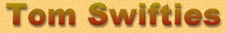 Pasteurize: Too far to see. Propaganda: A gentlemanly goose. Toboggan: Why we go to an auction. 'Tom Swift was a fictional character in books written for children by the author E. L. Stratemeyer in the early 1900's. (We read every one of them!) These stories depicted Tom as a young genius, whose amazing inventions took him to places all around the world. In these books, the author always avoided using the word 'said' whenever Tom spoke. Tom asserted, averred, chortled, declared, expostulated, grimaced, grinned, groaned, quipped, smiled, ... or if he ever actually 'said' something, he did it colourfully, as in 'Tom said, laughingly'. Eventually, someone decided to satirize this form of writing by using punning adverbs, and the Tom Swifty was invented!' An example: "Take the prisoner downstairs," Tom said condescendingly." The adverb 'condescendingly' makes a double pun on the related words 'con' (prisoner) and 'descending' (downstairs). Here are some more: